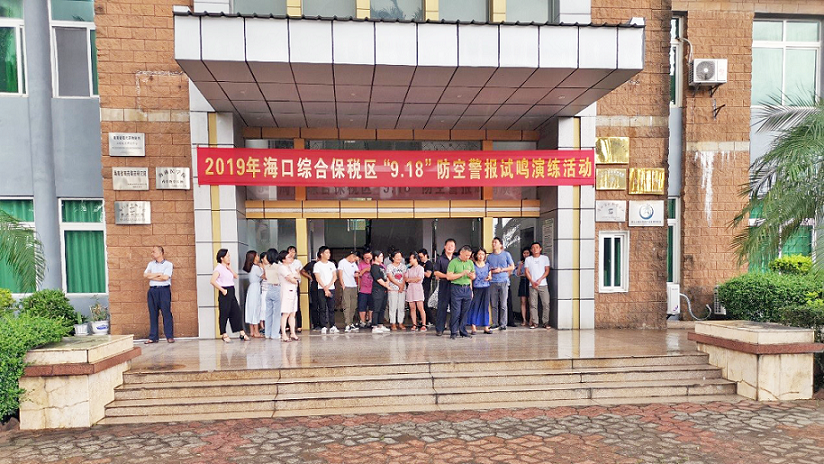 為增強駐區企業員工的國防觀念和防空意識,了解和識別防空警報信號,掌握防空襲疏散隱蔽知識,海口綜合保稅區聯合我司開展九一八防空警報試鳴演練活動。此次活動由綜保區統一指揮,我司負責具體實施,社事局局長黎晨主持,財政局局長王振武、園管局局長馬慶禮、原紀檢監察室主任李軍、社事局副局長李建玲、經發局副局長歐文、綜保倉儲物流公司、保安部、市中醫院等領導及相關部門負責人參加觀摩演練。