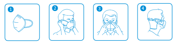 1. 打開產(chǎn)品包裝,將口罩有鼻夾的一邊向上,并用手托住防護(hù)口罩,將兩側(cè)口罩帶分別拉至耳后。